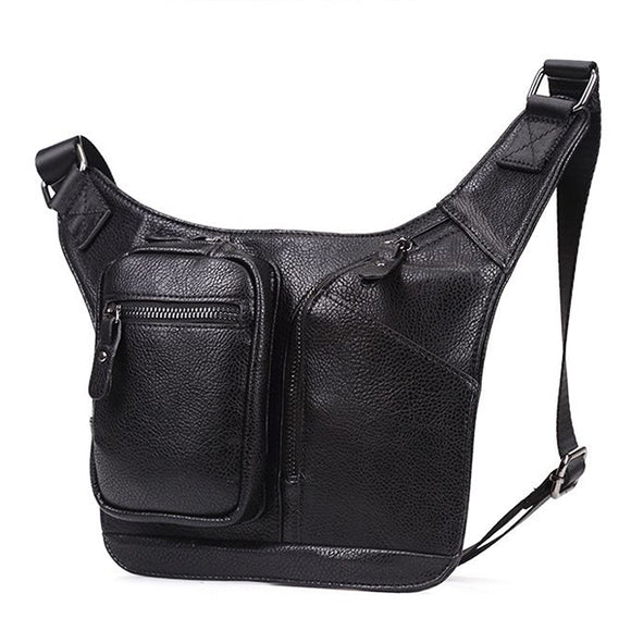 PU Leather Solid Casual Crossboby Bag Chest Bag Multifunctional Light Weight Shoulder Bag for Men
