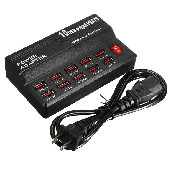 10 Port USB Charging Station Power Adapter Wall Travel Desktop Charger for Mobile Phone