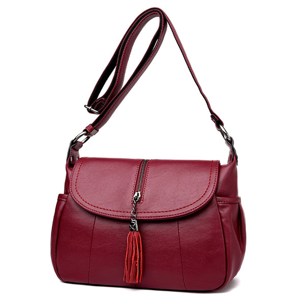 Women Soft Leather Solid Tassel Crossbody Bag Elegant Messenger Bag
