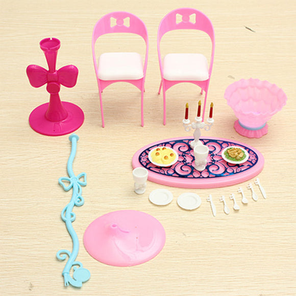 Wooden Dollhouse Furniture Doll House Miniature Dinning Room Set Kids Role Play Toy Kit