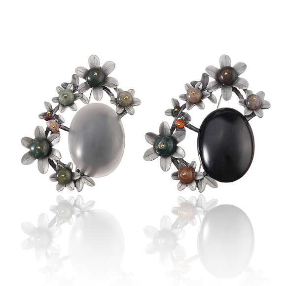 Vintage Natural Agate Stone Wreath Suit Jacket Brooch Pin