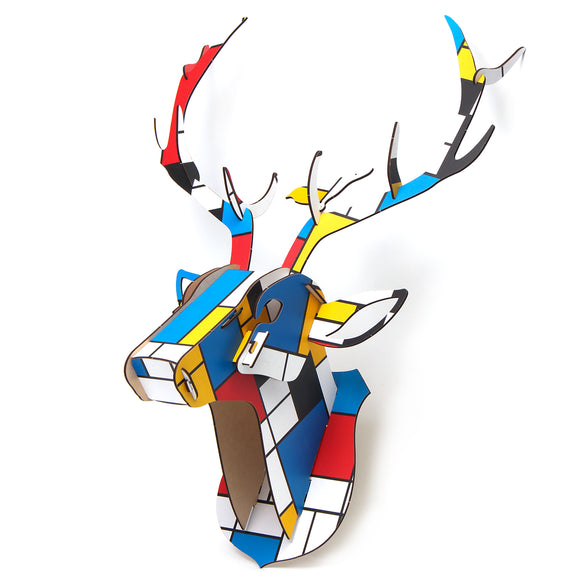 Wooden DIY Animal Painted Deer Head Wall Hanging Christmas Decoration Toys