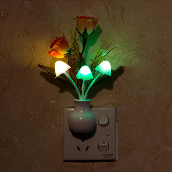 Vase Mushrooms Leaves LED Dimming Night Light 7 Colors Changing Light Control Home Wall Decor Gift