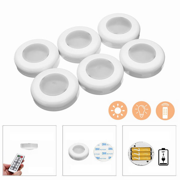 6Pcs 0.5W Round Remote Control LED Cabinet Light Dimmable Timer Closet Light Night Light DC4.5V
