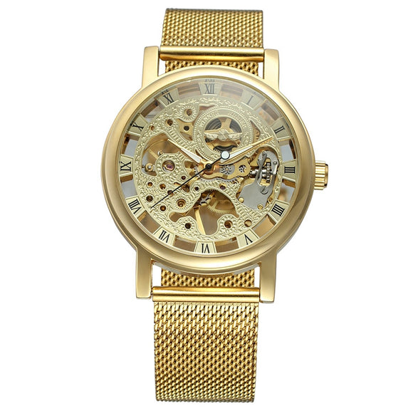 WIN358-5 Business Style Men Watch Transparent Golden Case Self-Wind Mechanical Watch