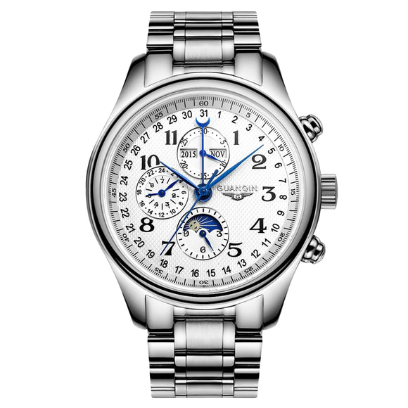 GUANQIN GQ20022 Moon Phase Calendar Automatic Mechanical Watch Stainless Steel Men Watch