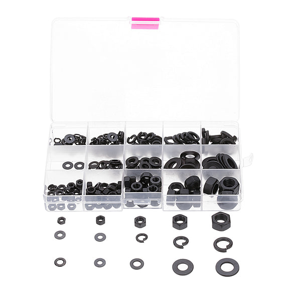 Suleve MXCW1 231Pcs Hex Nut Flat Washer Spring Lock Washer Carbon Steel M4/M5/M6/M8/M10 Assortment