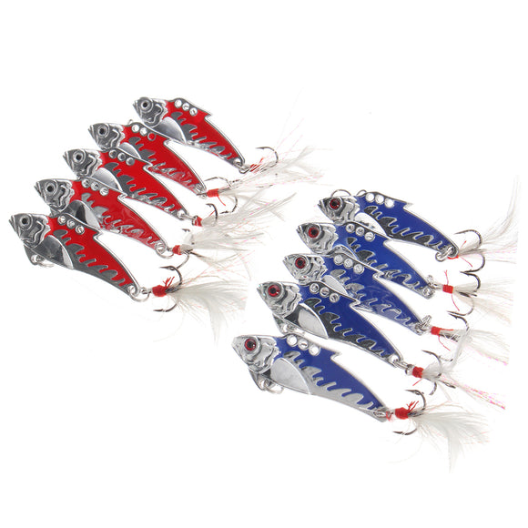 10pcs 5cm 8.2g Metal VIB Fishing Lure Crankbait Hard Bait Treble Hooks
