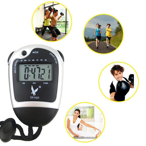 Portable Hand-held Single Row 2 Memories LCD Digital Stopwatch with Time Date Alarm Function