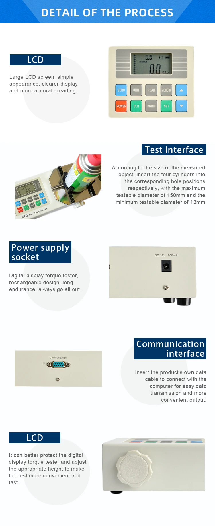 Digital Torque Tester STO-50P > 500 Rounds 50 Hours < 8 Hours DC12V 300ma covered with plastic