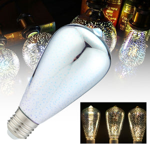 E27 ST64 3W RGB Glass 3D Fireworks Retro Edison LED Decorative Light Bulb AC220V