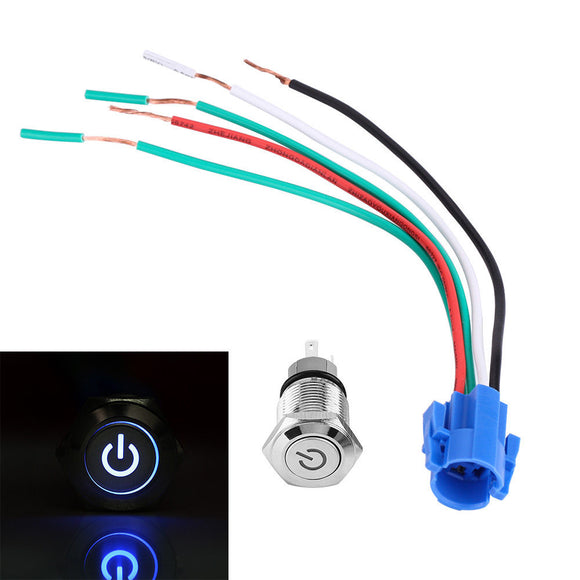 12V 16mm Waterproof Momentary Horn Metal Push Button Switch Blue LED Lighted