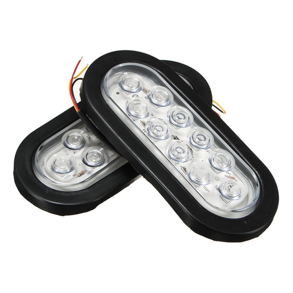 Pair LED Oval White Waterproof Bus Stop Turn Tail Reverse Light For Truck Trailer