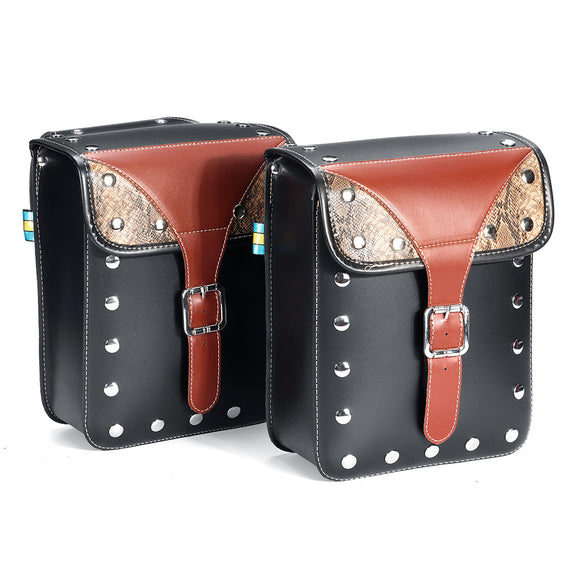 2pcs Waterproof Motorcycle Side Saddle Bag PU Leather Luggage Square Bag