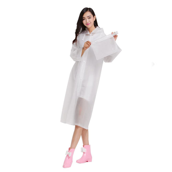 Women Thickened EVA SemiTransprent Rain Coat Rainwears Korean Style Hood Sleeves Bright Color