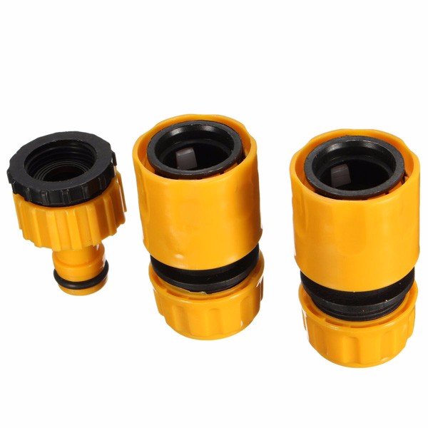 3PC 1/2 3/4inch Hose Pipe Fitting Set Quick Connector Adaptor Garden Lawn Tap