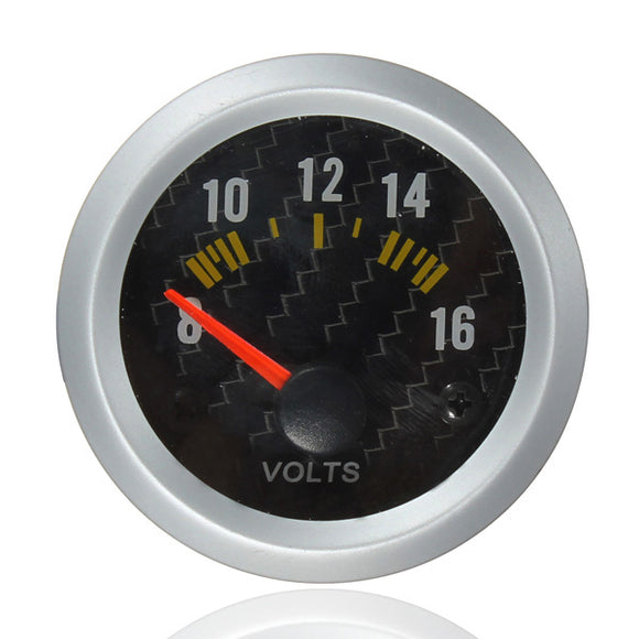 Carbon Fiber Face Volt Meterr Volt Gauge 12V Yellow LED 8 to 16 Volts