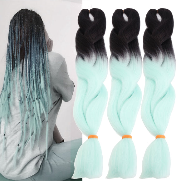 24 Black & Mint Green Ombre Dip Dye Kanekalon Braiding Hair Extensions"