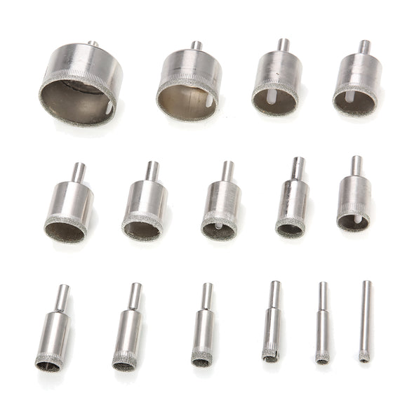 15pcs 3-42mm Diamond Hole Saw Cutter Set Tile Ceramic Glass Porcelain Marble Drill