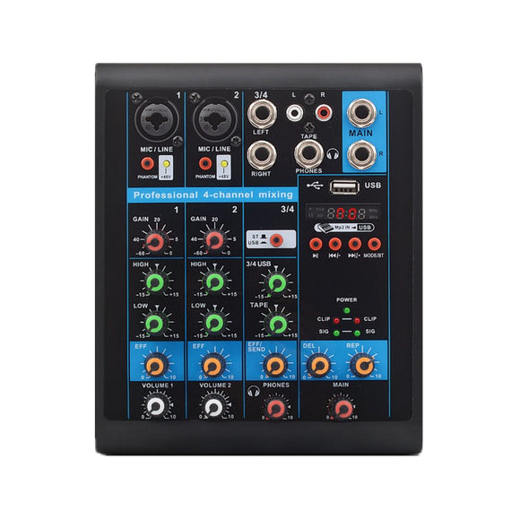 Mini 4 Channels Audio Mixer USB bluetooth DJ Sound Mixing Console MP3 Karaoke Amplifier for KTV