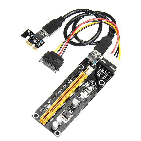 PCIE PCI-E Express 1x To 16x Extender Riser Card Adapter 15Pin Power USB 3.0 Expansion Mining