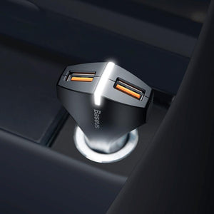 Baseus Dual USB Car Charger QC3.0 Quick Charge with LED Indicator Light For iPhone / Xiaomi Mobile Phone / Tablets 12-24V Universal