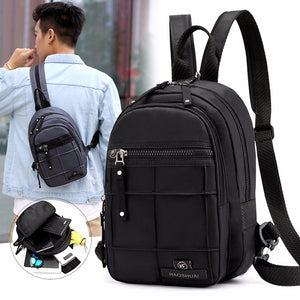 Men Multi-function Nylon Waterproof Backpack Casual Crossbody Bag