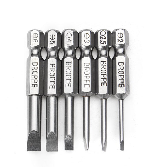BROPPE 6Pcs 50mm Magnetic 2.0-6.0mm Flat Head Slotted Tip Screwdrivers Bits