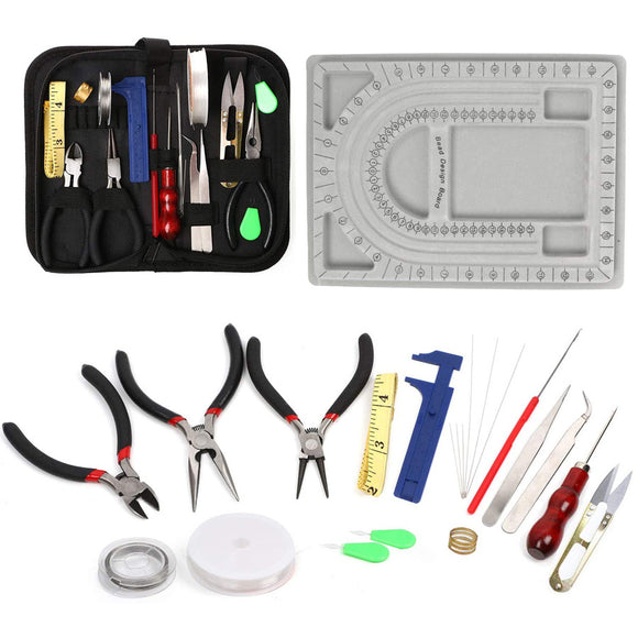 23PCS Zipper Leather Bag Set Bag DIY Pliers Beading Needle Children's Early Education Puzzle Handmade Necklace Design Plate